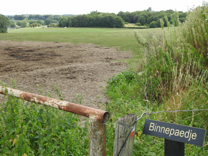 Een smal pad langs een akker vormt de volgende hindernis. Het is overgroeid met takken van een braamstruik. Daar waar deze even ontbreken, nemen brandnetels de honneurs waar. We overleven de helletocht.