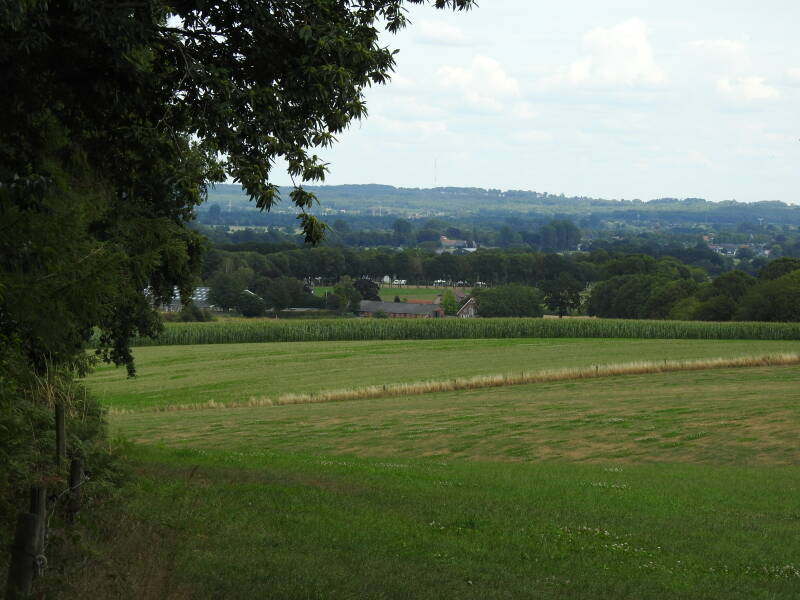 Het pad gaat steil omhoog. Hier en daar bieden geplaatste planken als een soort trede enige steun. Ruim zeventig meter gaat het omhoog. Een speciaal uitzichtpunt laten we links liggen maar het landschap wordt on-Nederlands. Steile heuvels met diepe dalen bepalen de omgeving. Een mooi beukenbos heeft z’n bodem bedekt met varens. Het zonlicht speelt met het zachte groen. De paden gaan alleen maar omhoog of naar beneden. Deze ‘berg’ is nog maar sinds 1949 Nederlands grondgebied, zo vertelt de info.