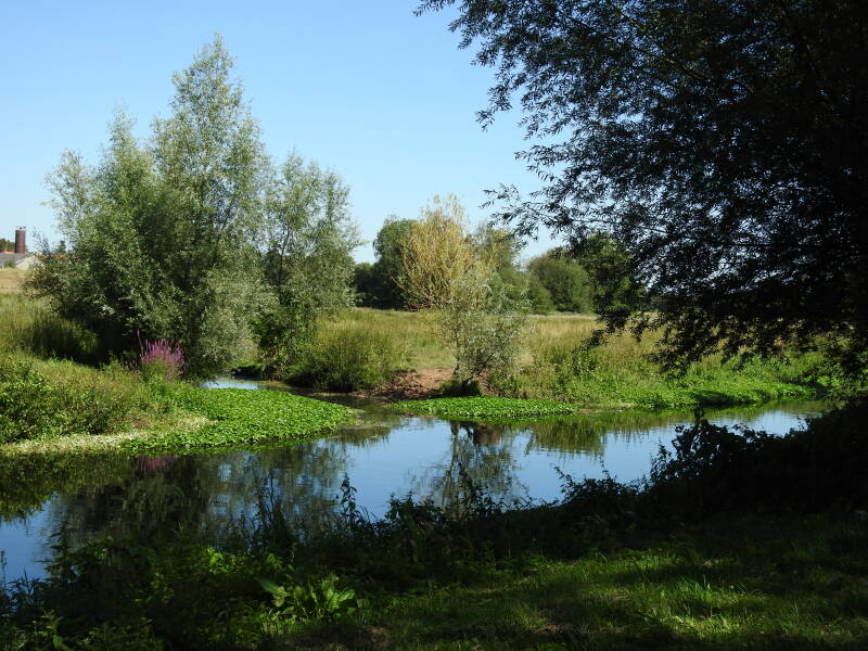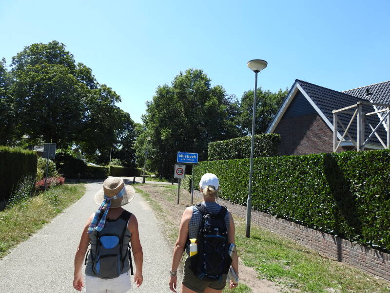 Als we nabij Milsbeek weer zijn afgedaald en de donkere bossen verlaten, zien we de camperplaats waar we destijds stonden. Het gemeentebestuur van Gennep heeft met sponsorgeld een groot terrein rondom een voormalige vesting opnieuw ingericht. De burcht is destijds door de Fransen in het rampjaar 1672 opgeblazen, maar om het gebied z’n oude luister terug te geven zijn paden aangelegd, bruggetjes gebouwd en bomen gepland. Nu draagt het de naam van vesting Genneperhuis.