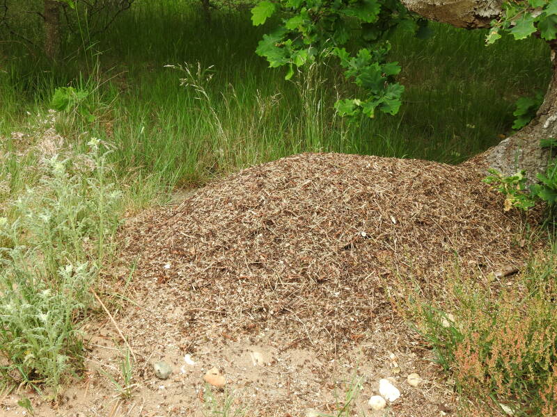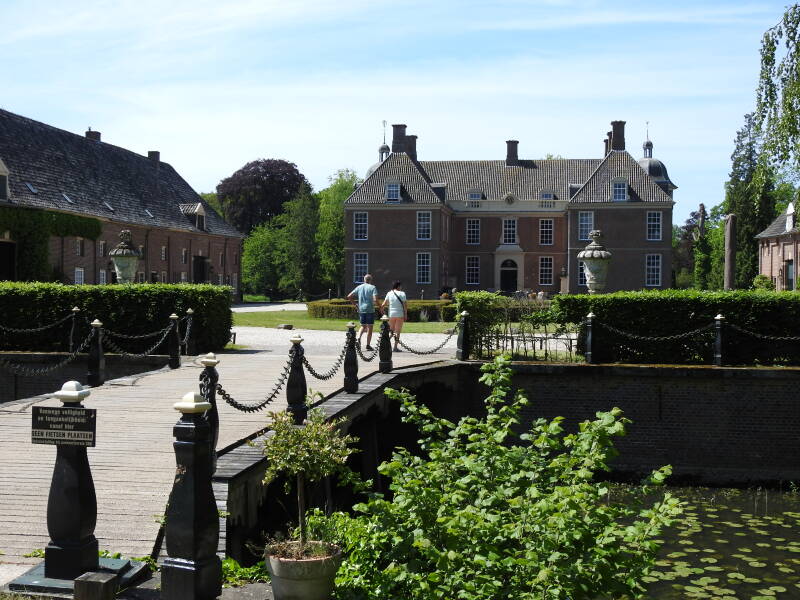 Hanna en ik vertrekken om etenstijd. Daarom lokt het eerste parkeerterrein wat we passeren ons al naar binnen. Het blijkt prachtig gelegen. Een aanliggend meertje is omgeven met riet en mooie bloemen staan paars te bloeien. Een koppel eenden vindt hier alles van hun gading en hebben zich er gevestigd. Aan de andere kant van dit moois raast het verkeer op de A28 voorbij. Nou ja, raast? Het verkeer kruipt voorbij. Rutte denkt dat de natuur afsterft als de automobilist vaart maakt en heeft geordonneerd dat er niet sneller dan 100 km gereden mag worden. Het blijkt opnieuw een blunder. Natuur aan de snelweg staat er schitterend bij en toont z’n volle glorie, heerlijk snuivend aan de stikstof. Een land krijgt de leider, die ze verdient. Na de goed belegde boterhammen met genoegen naar binnen te hebben geschoven gaat de reis verder.
