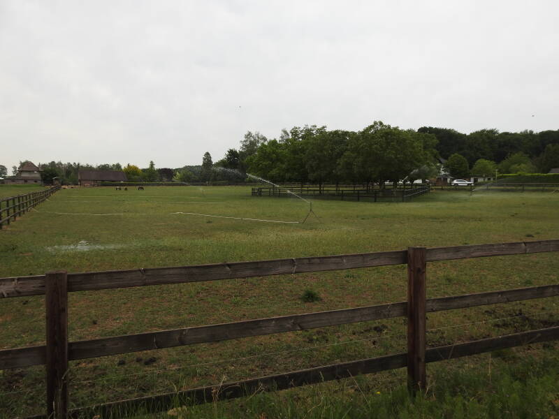 Bij de patatboer haal ik ons avondeten. Een zeeppomp getuigt van de lange arm van het gezag. Geen enkele klant besteedt overigens aandacht aan het pompje en bestelt watertandend hun lekkernij, zoals gewoonlijk. Om de vette hap goed te verteren stappen we in de vroege avond op de fiets. Het rondje gaat om een recreatiemeertje van Landall. Onderweg zien we hoe prachtig de Achterhoek is. Tegen de achtergrond van de forse heuvels van Montferland, fietsen we over kronkelige paden. Dit is de plaats van het goede leven. Hardlopers, snelfetsers en wandelaars begroeten ons hartelijk. De sfeer is relaxed en ontspannen.