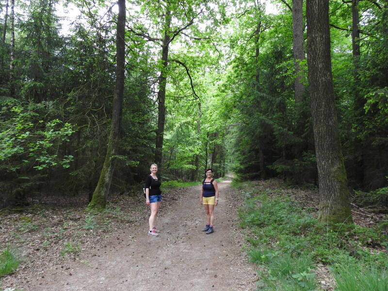 “We zijn het Pieterpad kwijt”. Deze opmerking die ik maak nadat ik mijn navigatiescherm heb gekeken, slaat in als een bom. Braaf volgen wij de wit/rode merktekens die ons de richting van het pad verklappen. Maar in dit gebied zijn meer wandelroutes. Om de ene van de andere te kunnen onderscheiden hebben ook deze de kleurcode wit/rood gekregen. Teresa vermoedt meteen dat we de verkeerde wit/rode bordjes zijn gaan volgen. Dit vermoeden wordt versterkt als Hanna het bijschrift van een onlogisch geplaatst bordje ontdekt en leest als ‘Jonkerroute’. Kloek nemen we het besluit om de schade van 700 meter te accepteren en op onze schreden terug te keren.