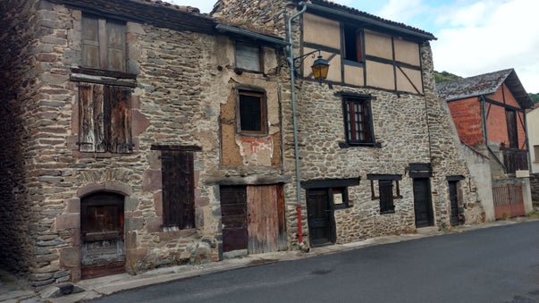 We wandelen in het dorp Blesle. Niet zo maar een dorp. Blesle heeft een speciale status. Het is opgenomen in de lijst van 100 mooiste dorpen van Frankrijk. Vanaf de CP lopen we zo het oude hart binnen. We komen door smalle straatjes waar geen enkel voertuig op meer dan twee wielen door heen kan.