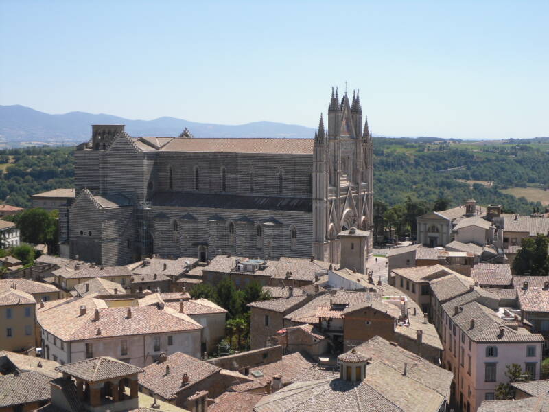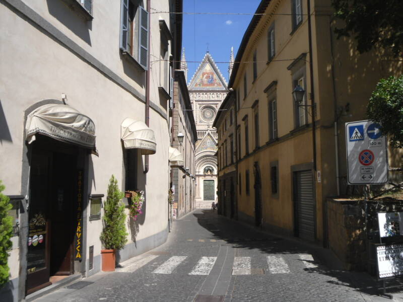 Vandaag rijden we naar Orvieto. Prachtige hoe deze stad op een rots is gebouwd en van ver al is te zien. We parkeren op de CP en gaan met de gondel naar de stad. We beklimmen een toren en krijgen een prachtig uitzicht over de omgeving. Vol bewondering bekijken we de Chieso. De voorzijde is vol met beeldhouwwerk. Binnen is er veel pracht en praal. Ook bezoeken we de ondergrondse stad. Hier blijkt vroeger een duivenfokkerij te hebben gehuisd.